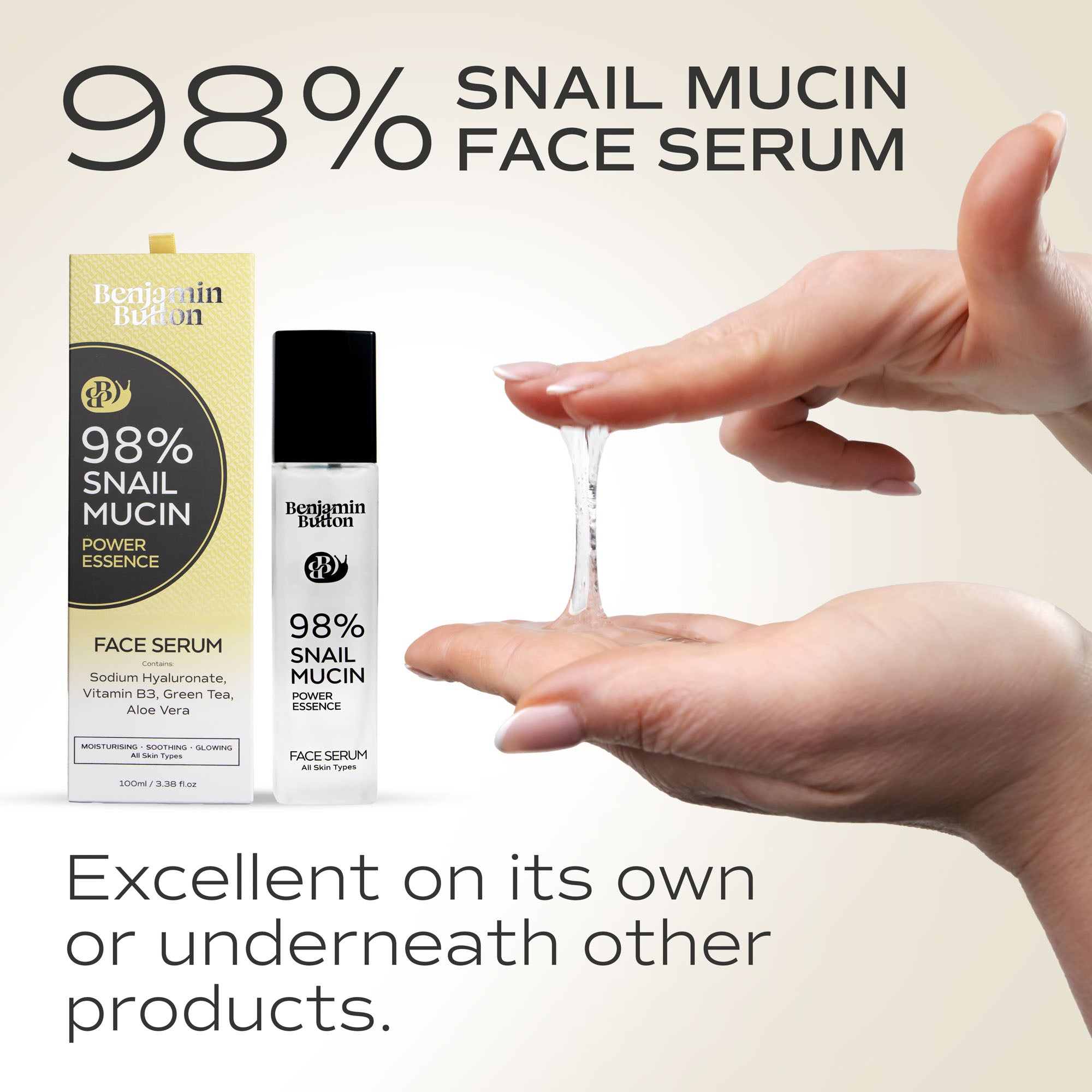 Filtrát z hlemýždího sekretu, Betaín, Butylenglykol, 1,2-Hexandiol, Ethylhexandiol, Ethylhexylglycerin, Sodium Polyacrylate, Sodná hyaluronát, Allantoin, Karbomer, Panthenol, Arginin, Extrakt z listů Camellia Sinensis (zelený čaj), Niacinamid (vitamín B3), Voda z listů Aloe Barbadensis.