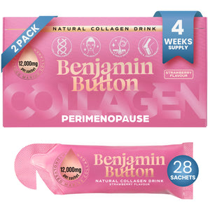 Sachets de colágeno para perimenopausia sabor fresa – paquete de 14 (suministro para 2 semanas) – 12,000 mg de colágeno marino con sauzgatillo, vitaminas y ácido hialurónico